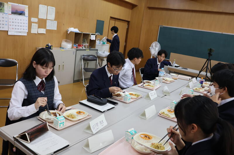 生徒たちは互いの学校の違いに興味を持ち、活発に意見を交わす姿が見られました。笑顔の中にも真剣な表情が印象的で、双方にとって有意義な時間となりました。交流の最後には、全員で給食をともにし、和やかな雰囲気の中で親睦を深めました。