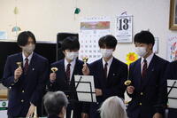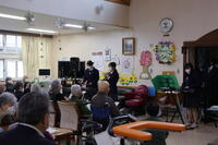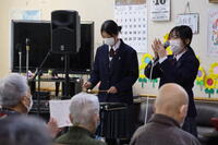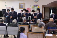 11月13日(木)、第3学年の音楽Ⅱを選択する生徒が「ふれあいハイムおしゃまんべ」を訪問し、演奏会を開催しました。演奏会では、生徒たちが選曲した「サライ」、「もう恋なんてしない」、「赤いスイートピー」を、バラエティ豊かな楽器編成で演奏しました。最後には、利用者の皆様と「赤とんぼ」、「蛍の光」を合唱し、音楽をとおして心を通わせることができました。
