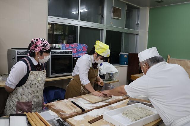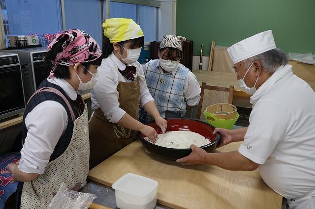 12月4日(木)、総合文化部及び地域活動部の生徒7名が校外活動として長万部町福祉センターにおいて、そば打ち体験を行ってきました。