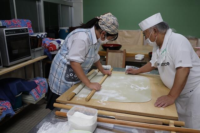 6月下旬に行われた「毛がにまつり」では、今年度も長万部そばサークルの皆さんの出店のお手伝いをさせていただきました。昨年度に引き続き、年末ということで実際にそばを打ってみたいという生徒の希望があり、サークルの皆さんに丁寧に教えていただきながら体験活動を行い、とても貴重な学びの機会となりました。
