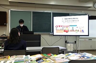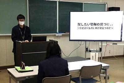 この授業では、図書資料やインターネット上にある様々な情報の中から、必要とする情報を効率的に探し出して効果的に活用する方法を学び、北海道立図書館と長万部町立図書館よりお借りした図書資料の中から、必要な図書を探し出す演習も行いました。
