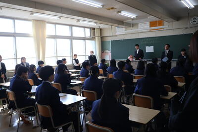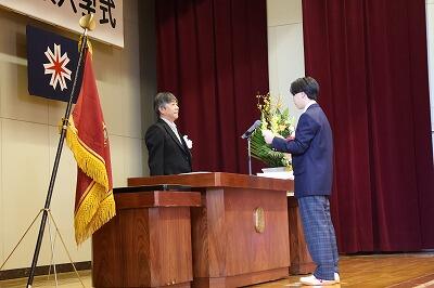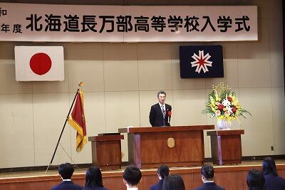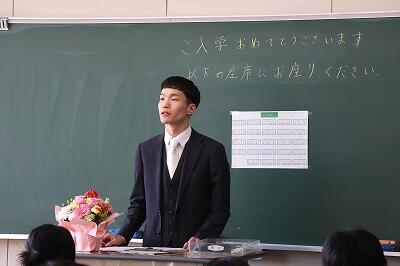 土屋校長は式辞において、本校の校訓「和而不同」に触れ、「これから過ごす学校生活の中で、他者を尊重し協働しつつ、大勢に流されることのない自己を確立するため、他者と共に成長して欲しい」と語りました。また、目標や目的の持つことの意義を語り、「目的を持つことは、現実での困難に直面した時に挑戦し続ける力を与えてくれる。これらを持ち続け、なりたい自分になるため、それぞれの未来に向かって努力することに期待している」と語り、新入生にエールを送りました。
