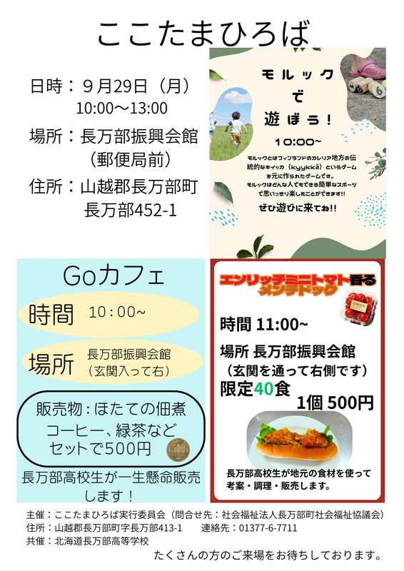 ここたまひろばのイベントにご来場いただきました皆様、長万部町役場の職員の皆様、長万部町社会福祉協議会の職員の皆様、ご協力ありがとうございました。